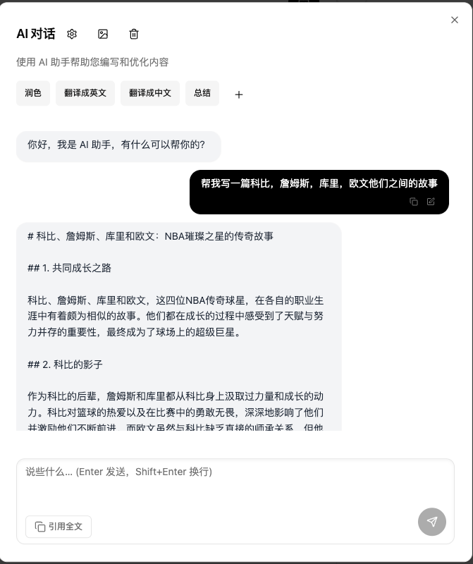 WeMark是一款AI驱动的微信公众号编辑器,提供智能图文生成功能。用户可通过简单五步操作生成AI图片:启动机器人→点击图片图标→选择AI生成→输入关键词→生成图片,不满意可重新生成。编辑器支持图片搜索、随机推荐及多种尺寸选择,生成后一键插入文章。文中以生成NBA球星主题文章为例,展示了如何用AI撰写科比、詹姆斯等球员的传奇故事并自动配图,最终形成包含标题、章节和匹配图片的完整推文。
