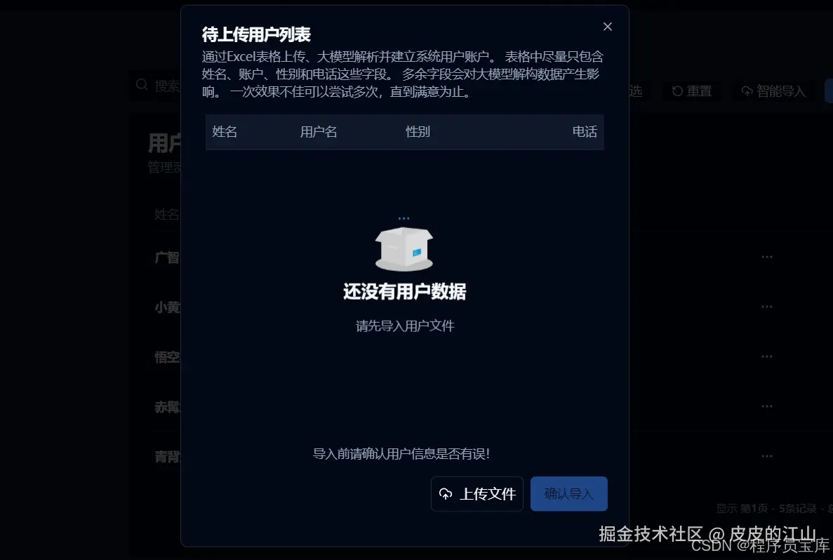 这是智能上传模拟上传用户表创建用户账号的一个功能。