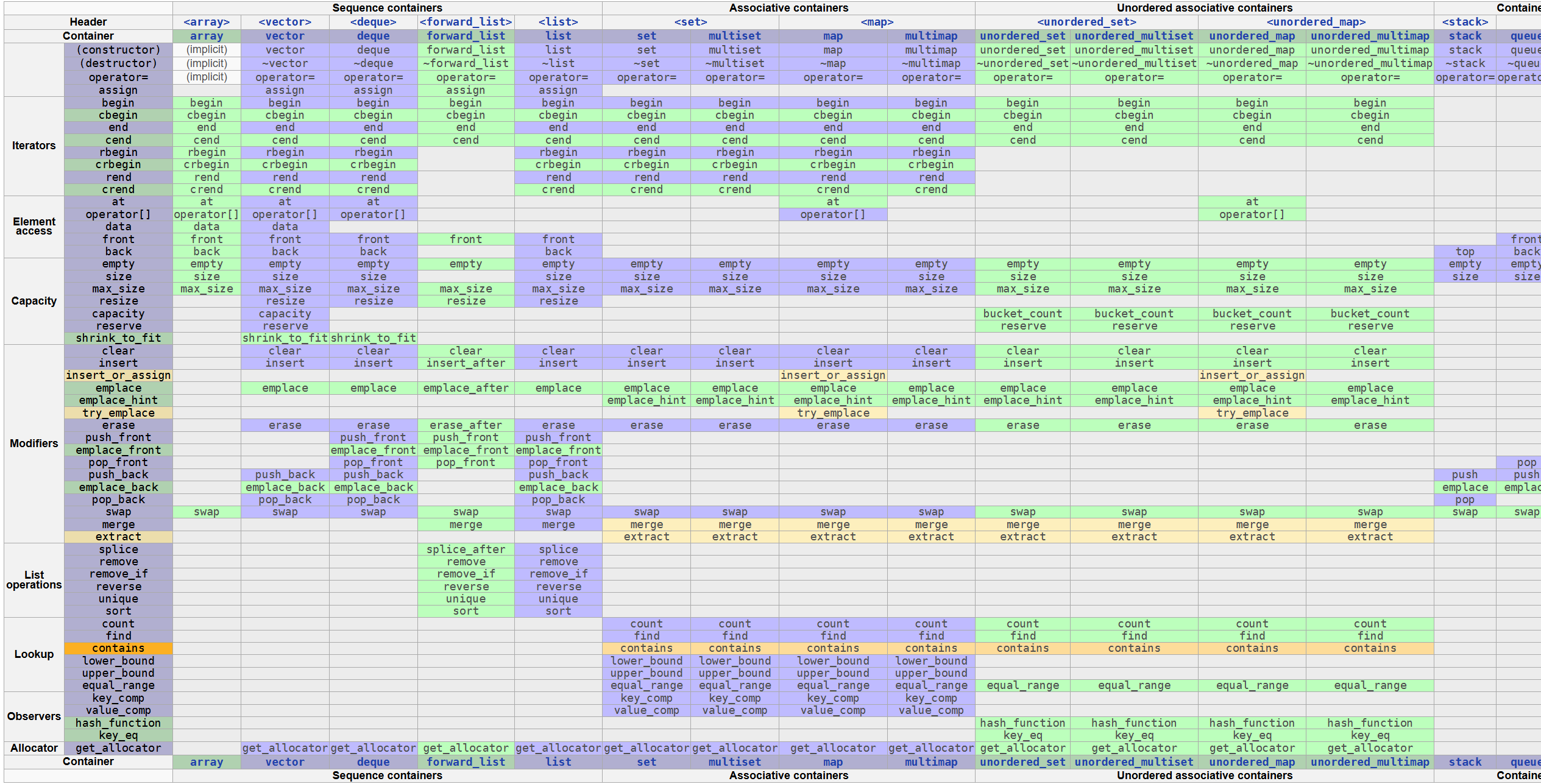 具体的话可以参考手册cppreference_docs/html_book_20190607/reference/en/cpp/container.html