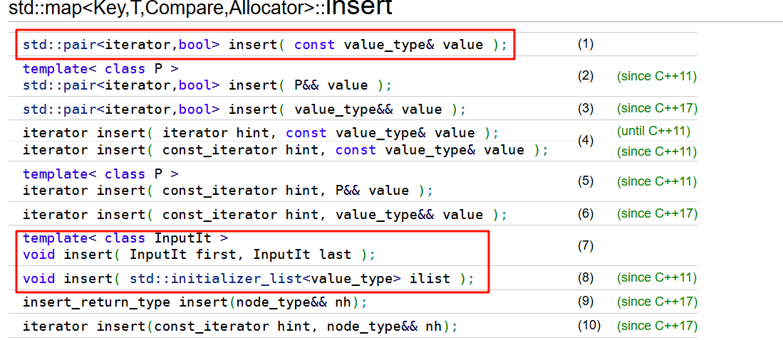 返回一个包含两个元素的元组:一个是指向插入元素(或者阻止插入的元素)的迭代器,另一个是一个布尔值,若插入操作成功则该值设为 true 。