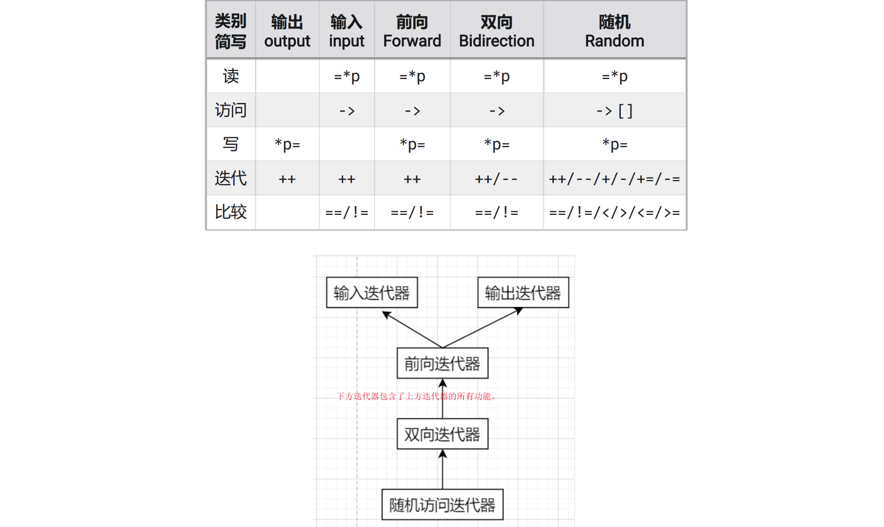 | 2. 输出迭代器 | 只写、单向遍历(仅支持 ++),只能遍历一次 |