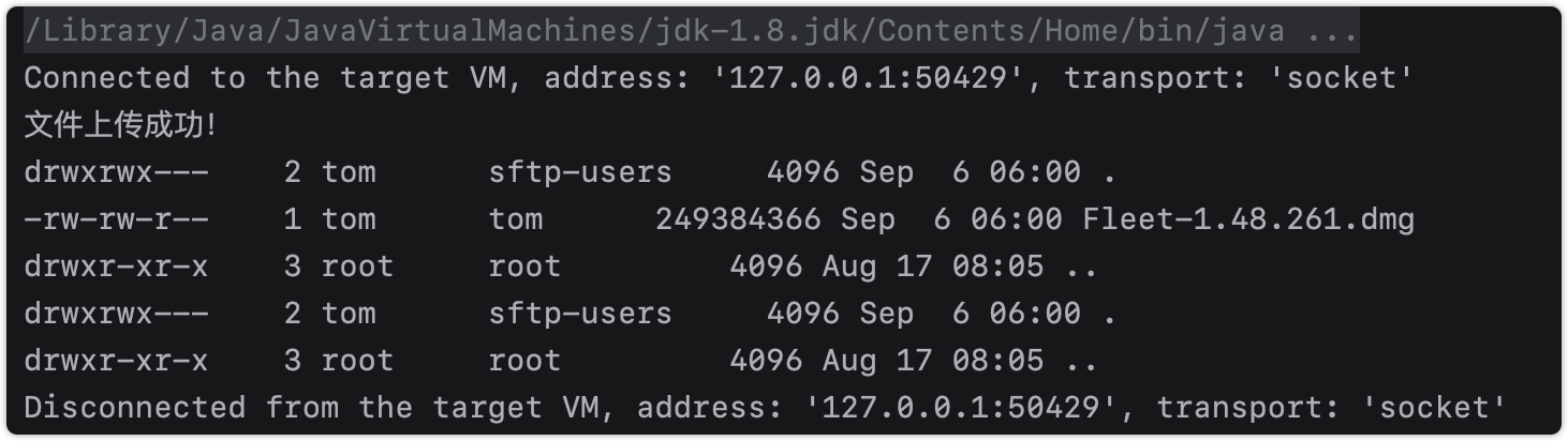 sftpChannel.ls("/home/sftp_users/tom/").forEach(System.out::println);