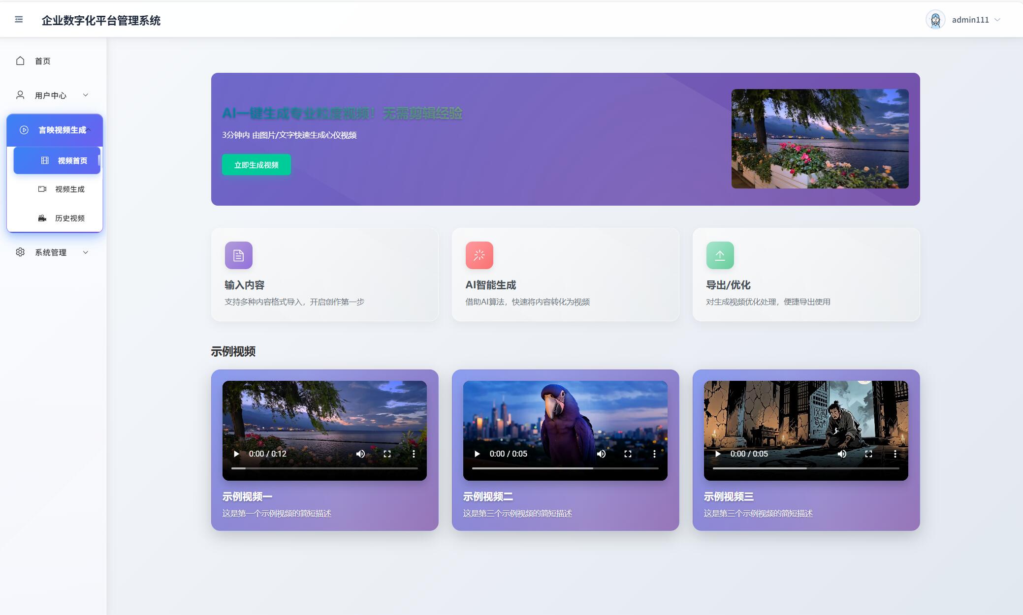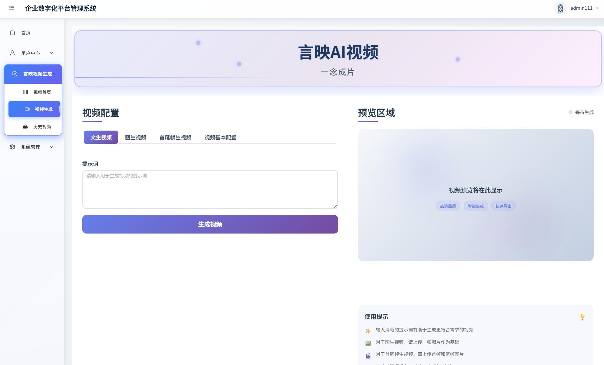 一、言映AI视频生成项目页面展示