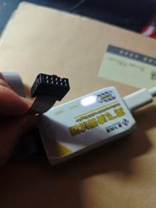 - 情况一:引脚没有插好:下图一中所示的调试器引脚插反,正确插入时板子LED灯会正常亮起,如下图二