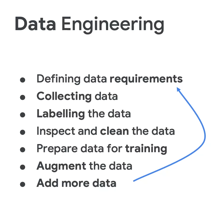 以上几个部分就是整个TinyML的全流程。每个部分又可以细化,就是下面图的下面色块的部分。可以看到数据工程分为了收集数据和处理数据。