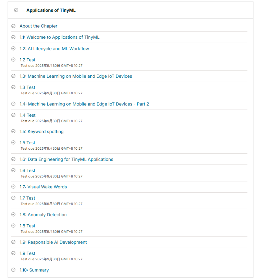 课程链接:https://learning.edx.org/course/course-v1:HarvardX+TinyML2+1T2025/home
