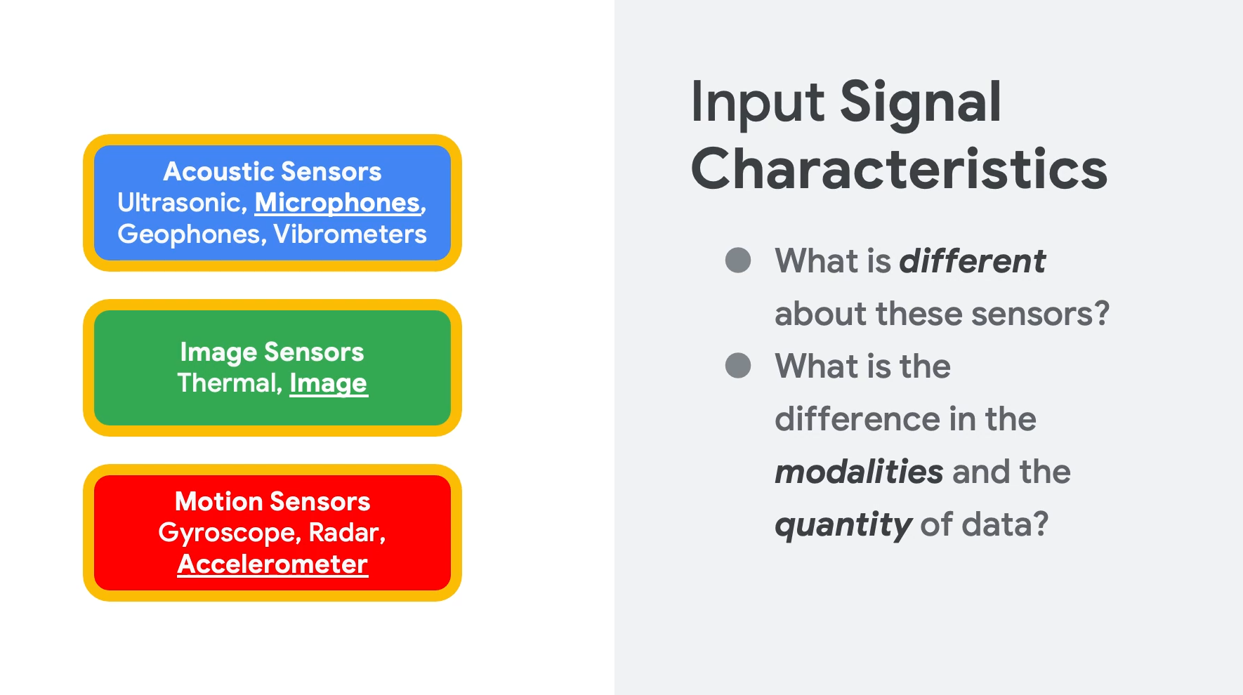 然后是说了三种不同的sensor传感器需要不同的处理。