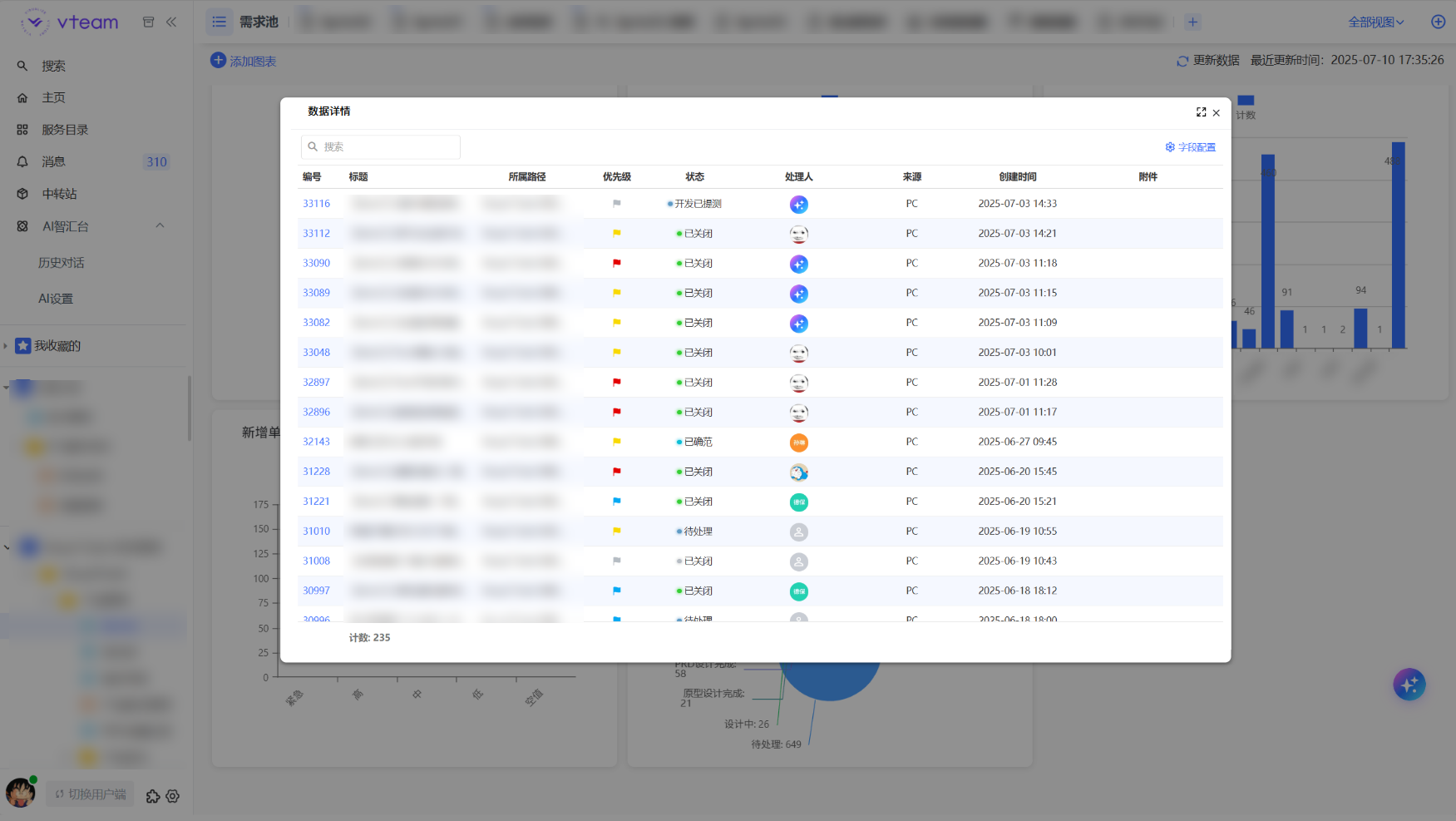 针对仪表盘统计数据无法直接追溯明细的问题,这次更新后,仪表盘就有了数据钻取功能。