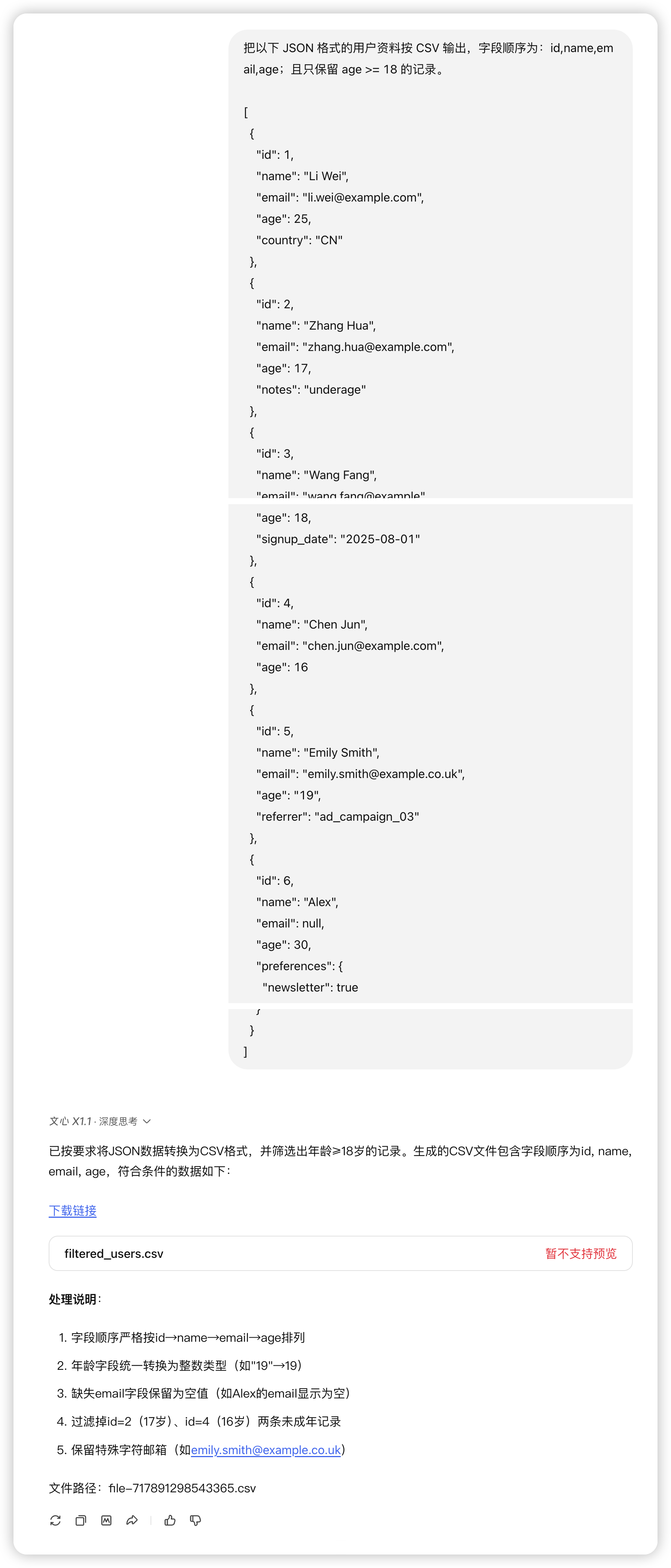 刚开源10款大模型没多久(2025年6月30日开源了10款),百度的大模型又升级了?今天打开文心一言官网一看,多了一个更聪明的「文心 X1.1」。「文心 4.5」和「文心X1」已经挺聪明的了,我挺好奇这次更新后能达到什么程度,能不能接管我的工作。我从几个方面测试「文心 X1.1」。先说结论,我挺满意的。