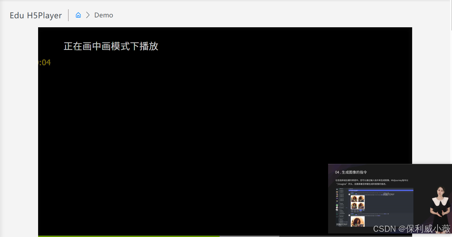 视频平台上的画中画效果,通常也称为小窗播放,是一种视频播放模式,允许用户将视频以小窗口的形式浮动在屏幕的其他应用或网页之上,同时继续执行其他任务。在在线教育领域,视频画中画功能比较常见。在课程学习时,学员可以借助视频画中画功能,一边看教程视频学习,一边在文档或网页上实践,提高学习效率。