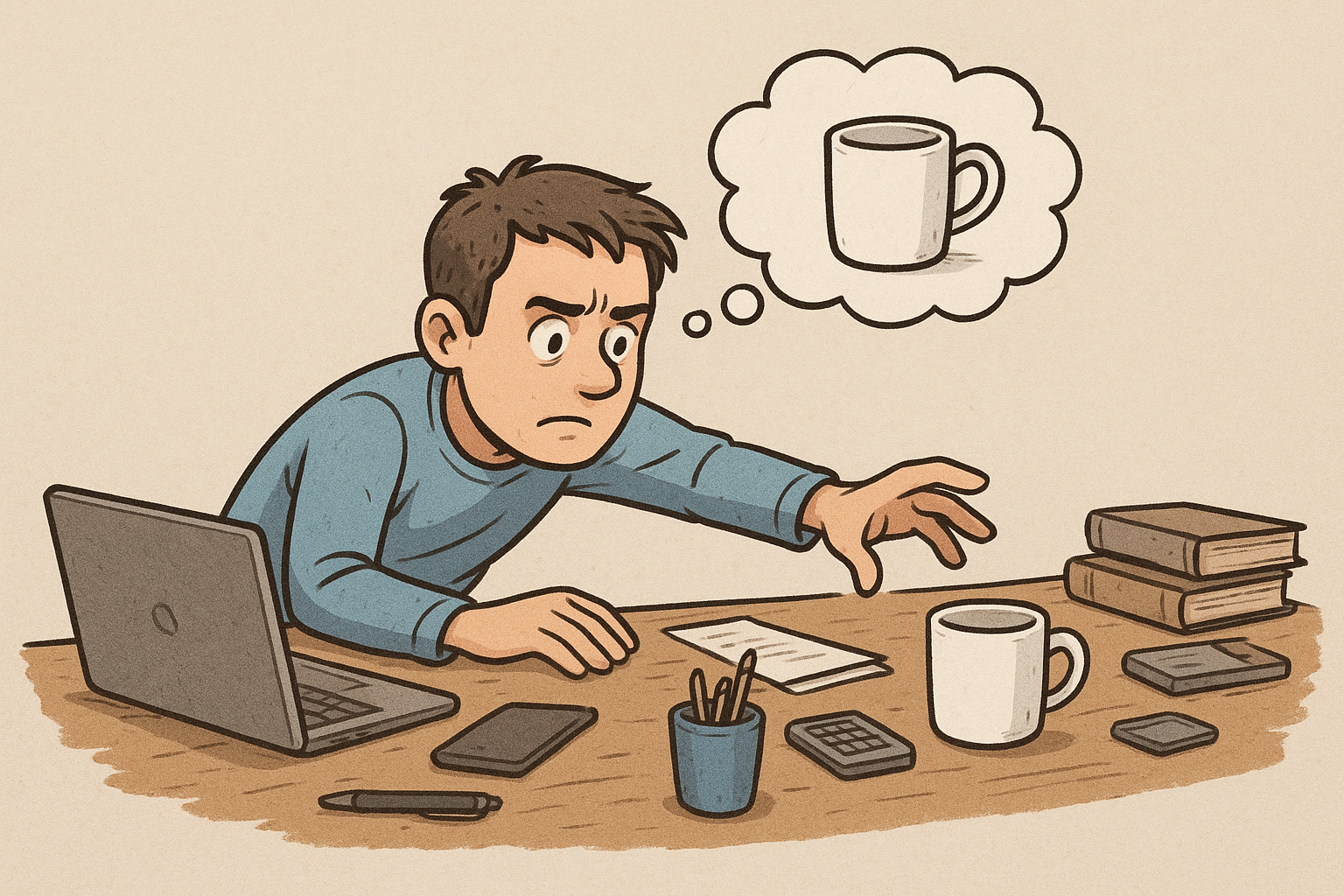 有时候,第一眼并不会找到杯子。人会重新观察 → 再思考 → 再排除 → 直到正确锁定目标。