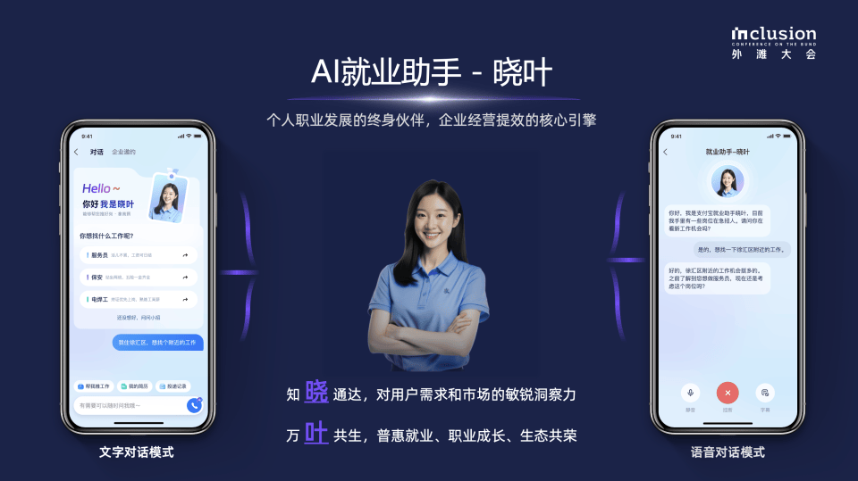 9 月 10 日,在 2025 Inclusion·外滩大会“从效率革新到普惠未来:AI赋能办事就业生态高峰论坛 ”上,支付宝数字就业团队正式发布AI就业助手“晓叶”,依托人工智能大模型与数字人技术,进一步提升企业招聘与求职者找工的体验,打造AI时代高效、智能、可信赖的就业服务新模式。