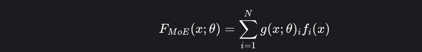 MoE 的核心在于其门控网络和激活专家的机制。这个过程可以用一个公式来完美概括: