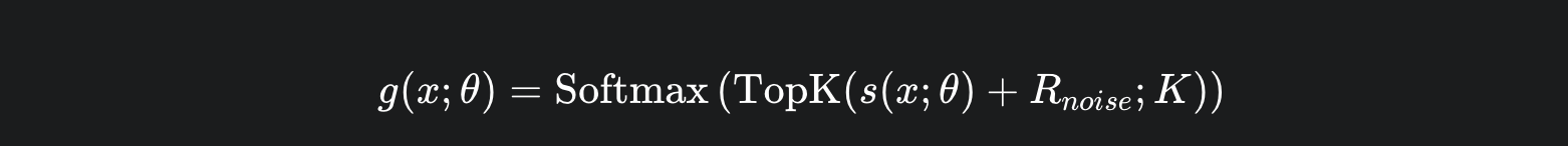 门控网络 s(x;θ) 会为所有专家计算一个原始得分。然后,一个 TopK 函数会从中选出得分最高的 K 个专家,将它们的得分保留,而将其他专家的得分设置为负无穷。