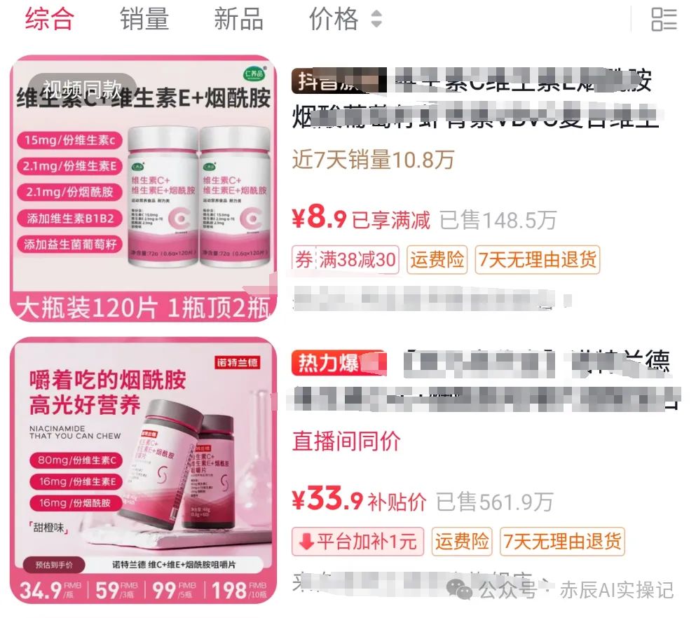 2.选对品类,低价、高佣金、消耗型,永远是小号破局的首选。先从最容易跑通的保健品、食品类切入。