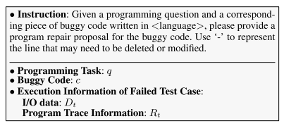 (1)Chain-of-Thought(CoT): CoT提示引出复杂的多步推理,以增强模型对程序修复任务的认知能力。
