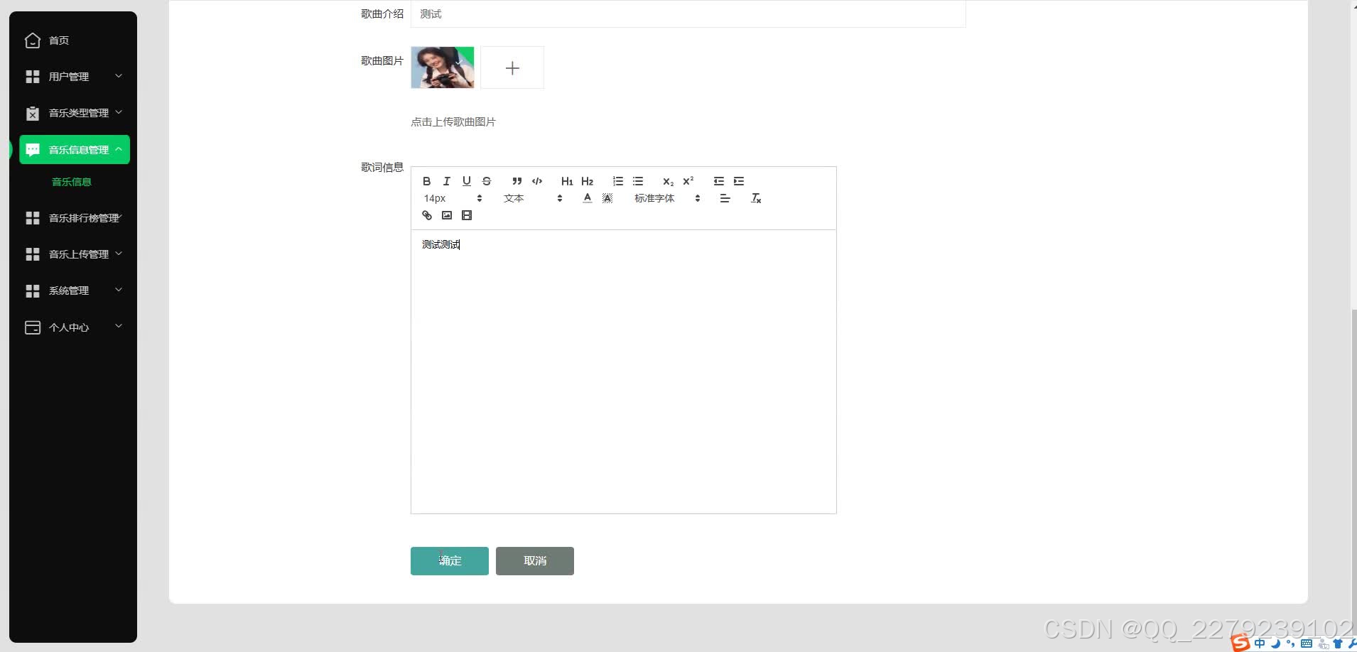 系统采用 SpringBoot 框架开发后端,集成 Spring Security 实现用户认证与权限管理,保障平台内容安全。数据库选用 MySQL 存储用户信息、音乐资源及互动数据,结合 Redis 缓存热门内容提升访问速度。前端采用 Vue.js 构建界面,支持音乐上传、在线播放、评论互动等功能。
