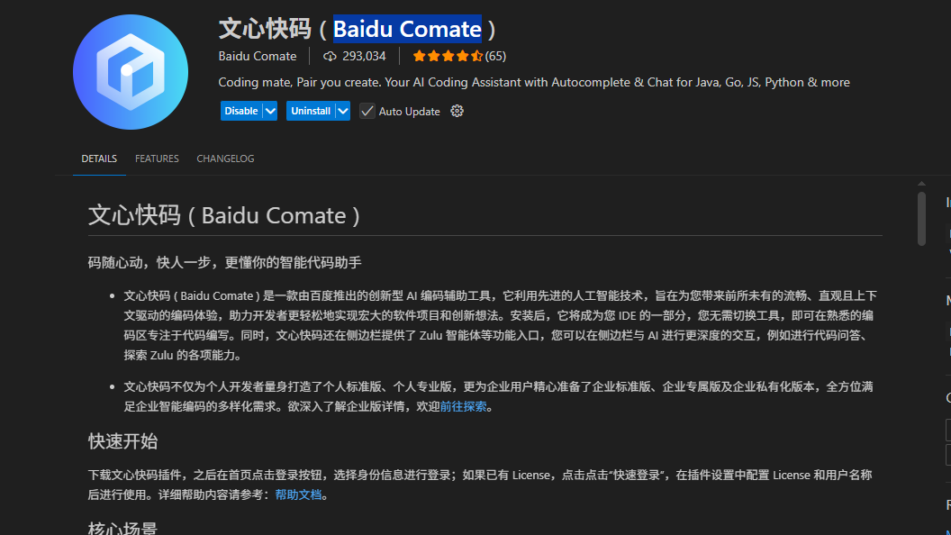 了解升级内容文档之后开始我们的开发,win10系统在我的vscode版本(1.104.0)直接插件安装,输入Baidu Comate之后安装等待,然后我们这边主要根据自己的需求选择需要的智能体,这边我是选择Zulu去进行开发