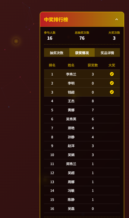 - 排行榜组件(记录中奖次数/大奖获得者)