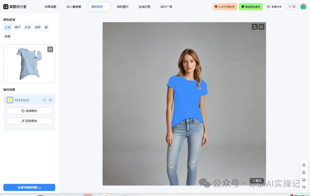 上传一张图,系统自动识别衣物区域,一次能生成四种颜色,褶皱、阴影都完整保留。