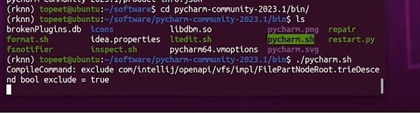 ls选择进入pycharm.sh,再./启动pycharm