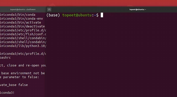 打开终端,有(base)说明完成了