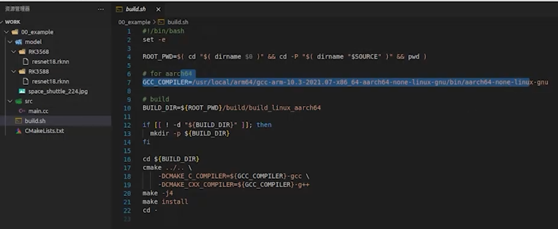 现在使用指令删除该文件,把\09_RKNN2 通用 API 讲解 \01_课程用到的资料 \02_交叉编译器 文件内编译器重新拷进去,再把第三方库的\09_RKNN2 通用 API 讲解 \01_课程用到的资料 \03_第三方库的3rdparty拷到work目录下