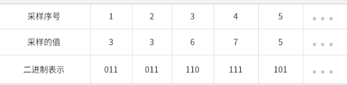 把每一个量化的采样点存储起来,并以二进制的形式表现出来的过程就是编码。下图就是存储的表格: