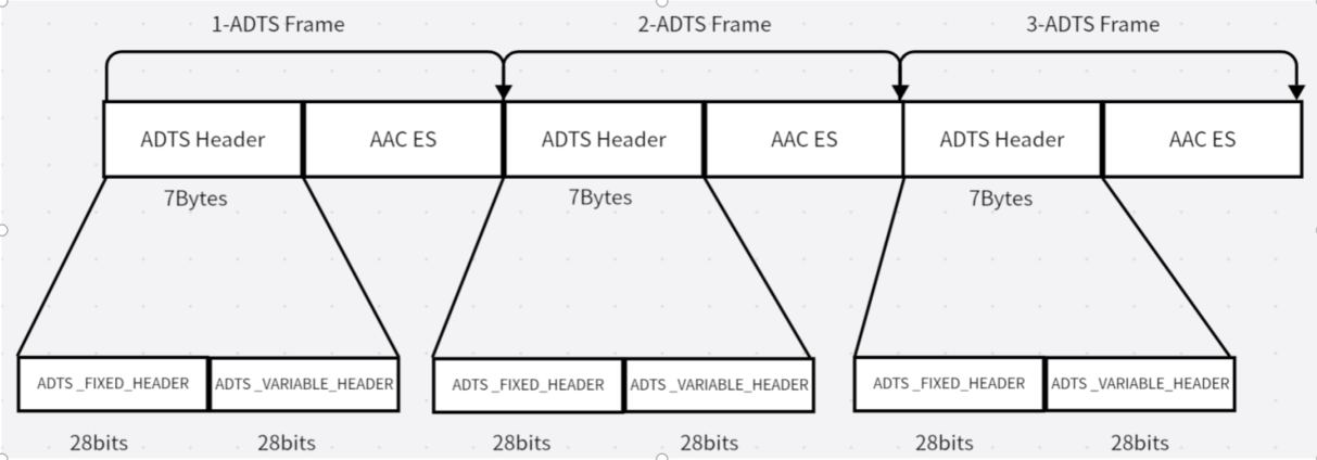 在写入AAC头部之后,就可以写入每一帧具体的AAC的ES码流