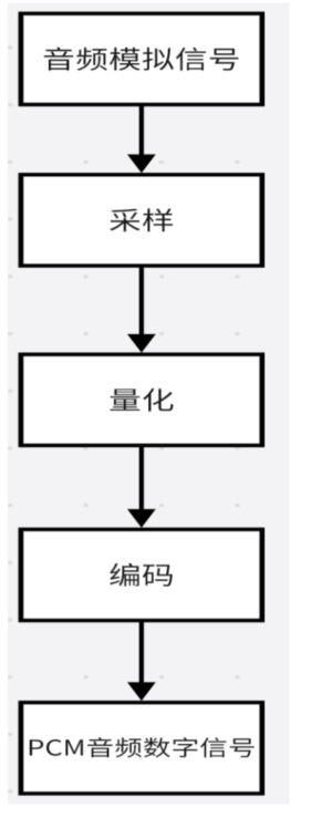 音频原始数据PCM,PCM全称是脉冲编码调制数据。PCM数据是未经过压缩的音频数据,它是由模拟信号经过采样、编码等步骤转换成标准的数字信号,下面是PCM生成的总流程。从下面这个流程图,我们可以看出来,音频模拟信号转换成数字信号需要经过采样、量化、编码三大步骤会变成PCM音频数字信号