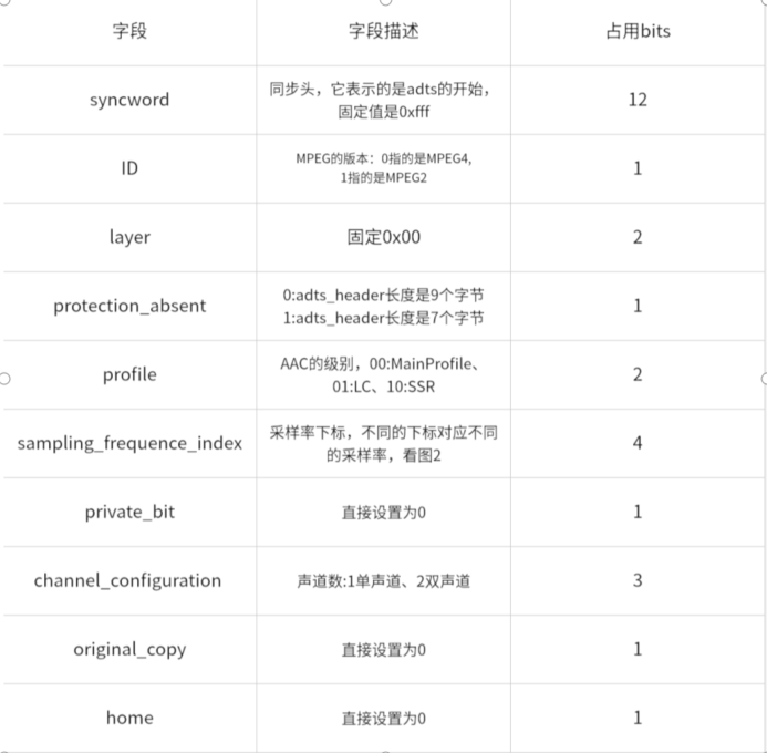 fwrite(aac_header, 1, 7, aac_file); //对每一帧AAC码流写入adts_header头部