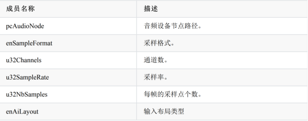 ai_chn_s.u32NbSamples = 1024; //音频采样个数