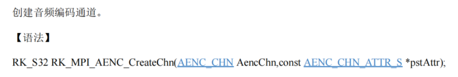 ret = RK_MPI_AENC_CreateChn(AENC_CHN, &aenc_chn_attrs); //创建AENC模块