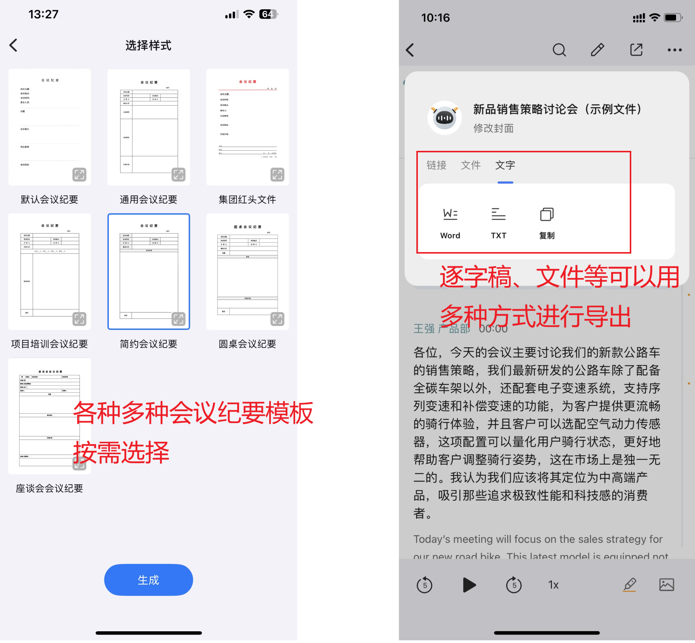 多样化导出与分享:支持导出为Word、PDF、长图、视频等多种格式,并内置了集团红头文件、项目培训等多种精美模板,让分享内容既专业又美观。