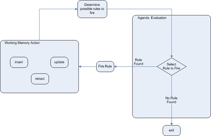 - Agenda: Location where activated rules are registered and sorted (if applicable) in preparation for execution.