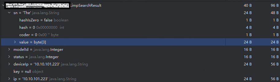 sn(48B),modelId(16B),status(16B),deviceIp(56B),ip(56B) 的 Retained Size 之和已经远超96B。但请注意,Retained Size 不能简单相加,因为对象之间可能有共享。 -