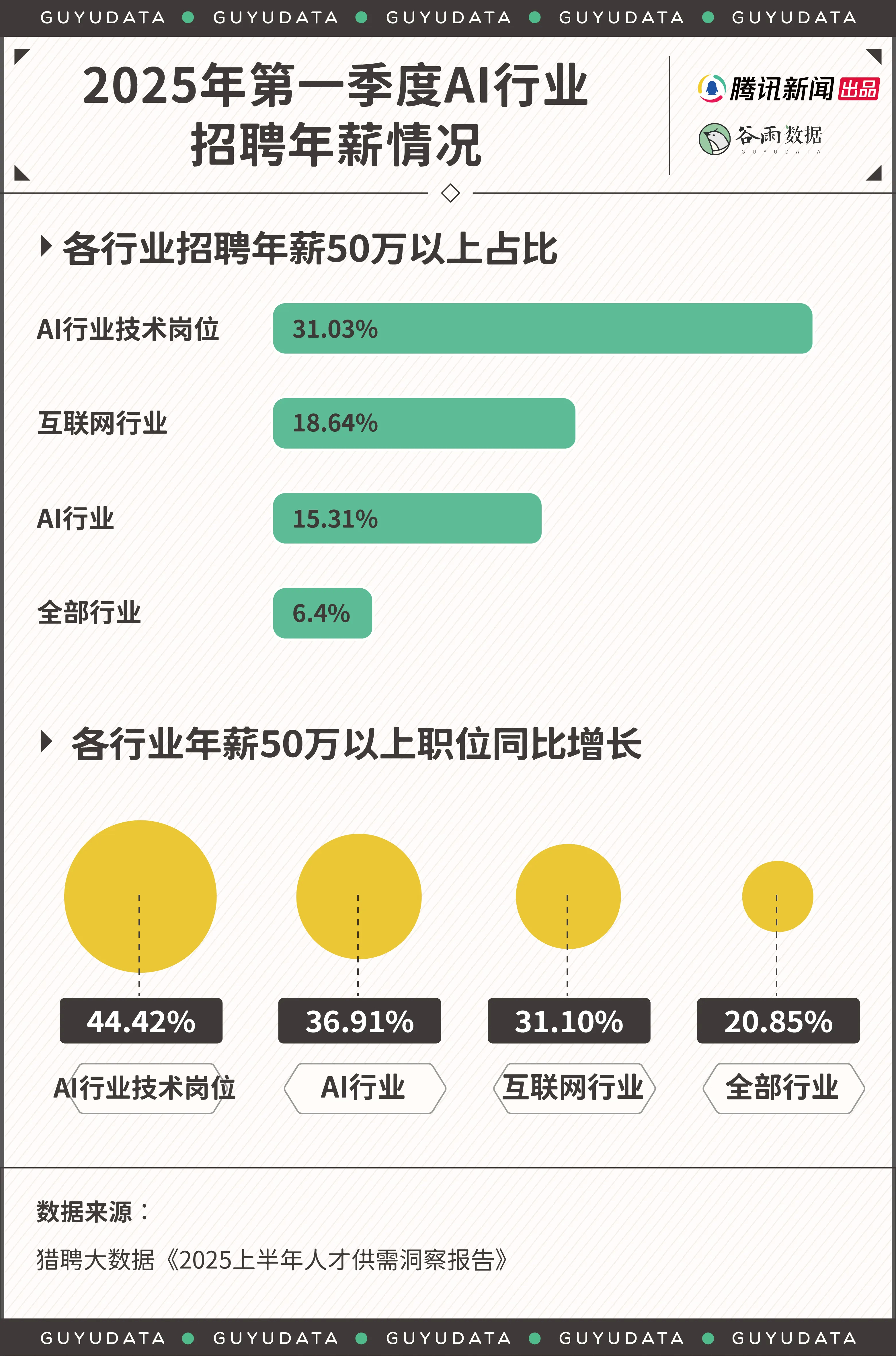 在本次分享开始前,先和大家分享下为何一定要学 AI,以下是 2025 年度第一季度的的最新 AI 行业招聘年薪情况!做过技术的应该都知道,无论是前端还是后端开发,如果没有晋升到管理层以上,技术岗基本上 50 万年薪已经到天花板了,如果想继续吃技术这碗饭并且年薪突破 50 万,目前最佳方式便是转 AI 行业技术岗!