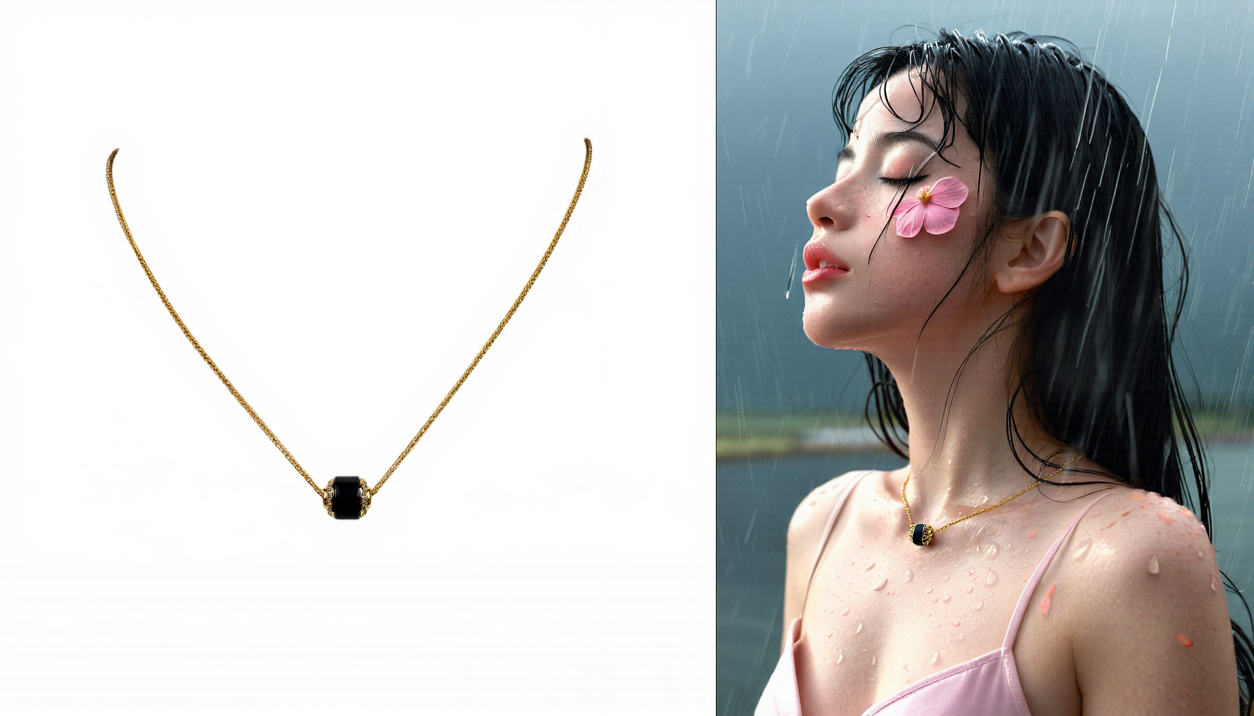 另外,使用「涂抹替换」功能,它还可以生成饰品/鞋子模特上身试穿图,上传模特图和产品图,就可以生成,操作简单便捷。