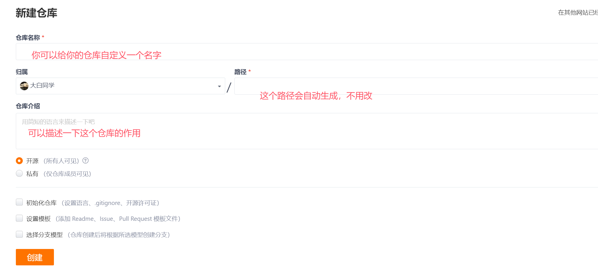 你可以先在你的Gitee或者Github账户下创建一个新的项目/仓库
