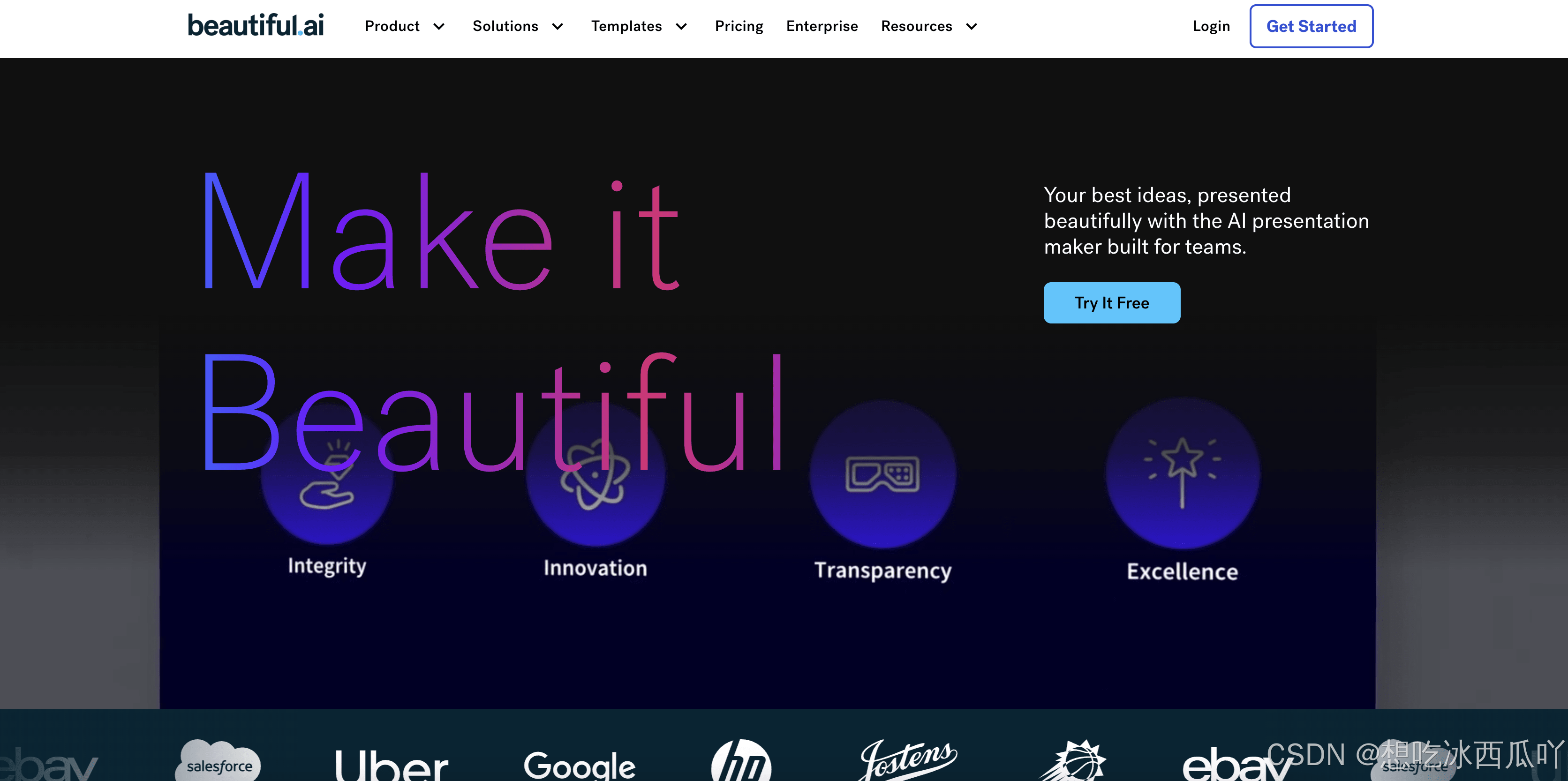 Beautiful.ai 专注于简化演示文稿设计过程,使其对没有高级设计技能的用户也易于使用。它在自动格式化和团队协作方面表现出色,是保持品牌一致性的理想选择。