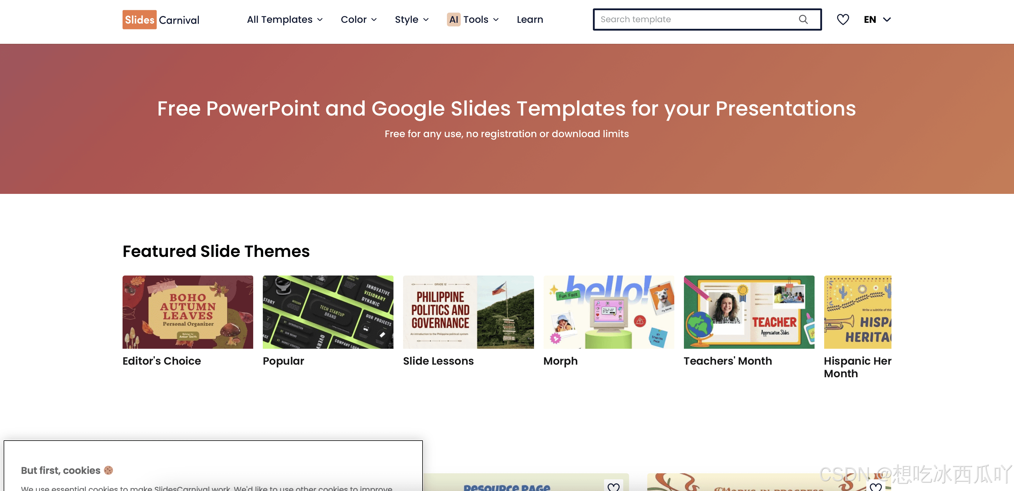 获取方式:进入其官网后,你可以直接按分类或颜色浏览模板。点击喜欢的模板进入详情页,即可预览并一键下载。这些模板兼容主流演示软件,方便你进行后续修改。