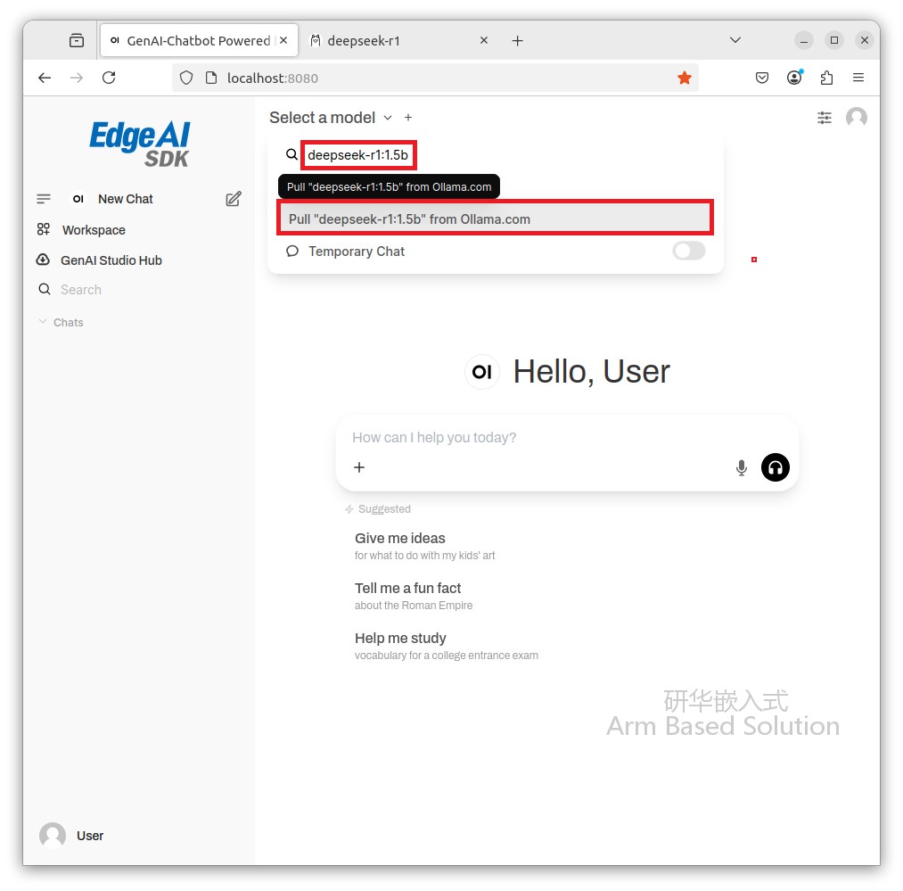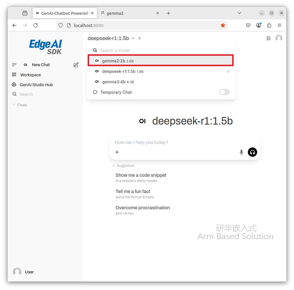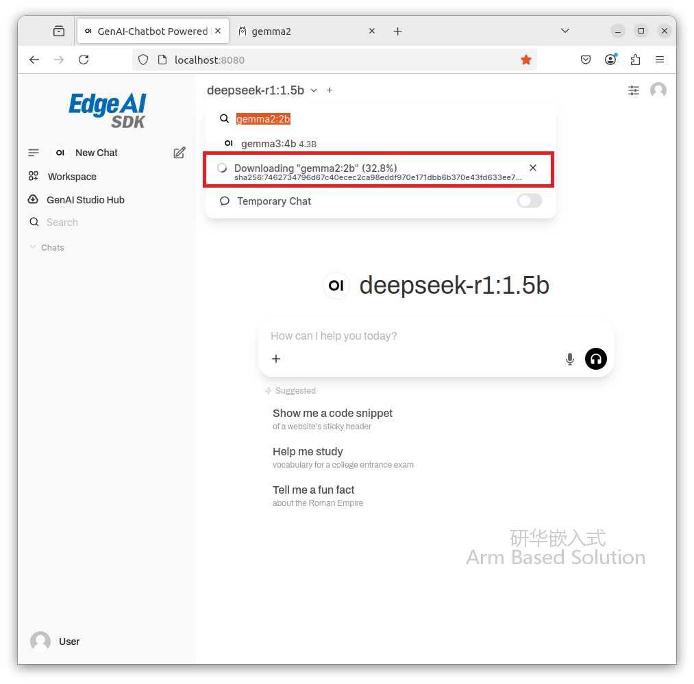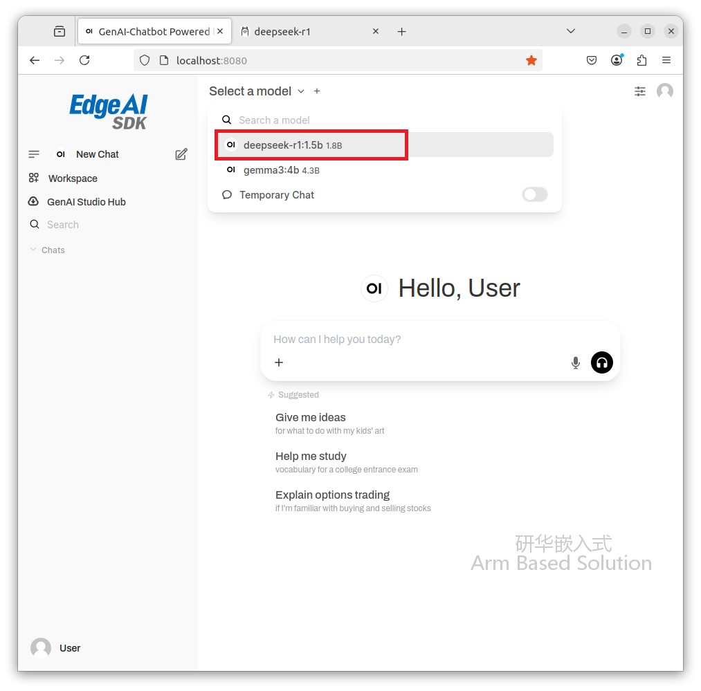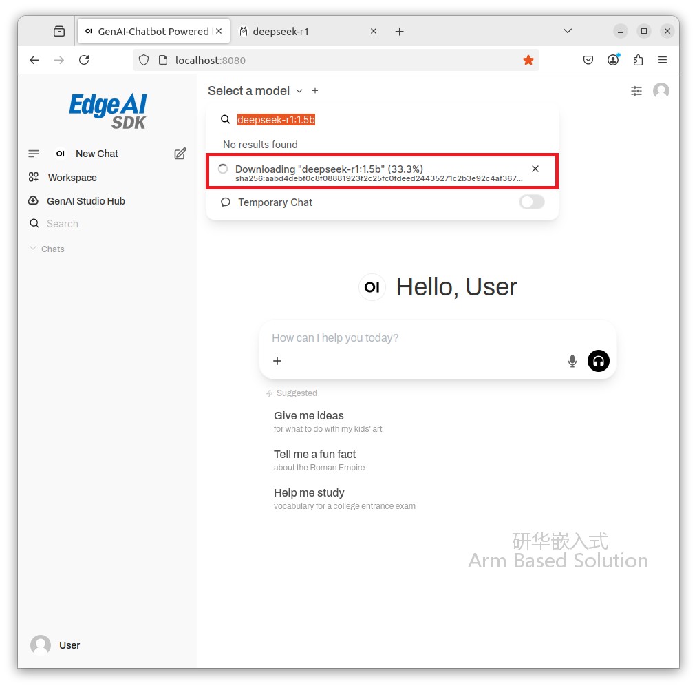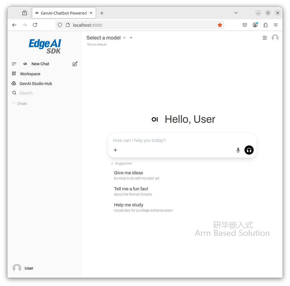 它将通过浏览器上的 EdgeAI SDK 页面启动 GenAI-Chatbot
