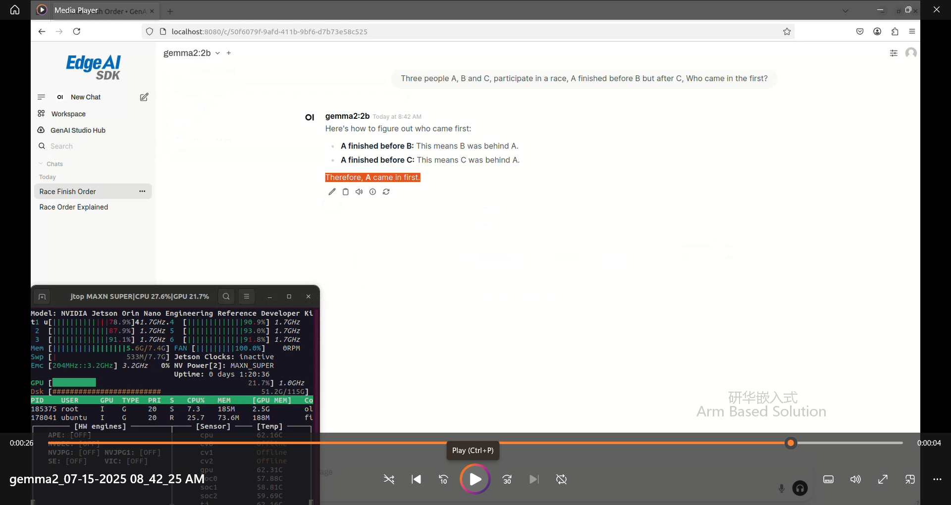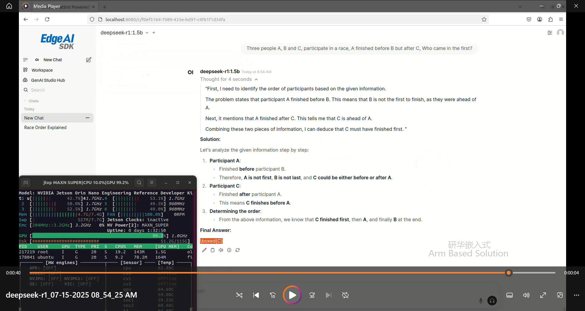 完成设置后,我们成功演示了在由NVIDIA Jetson Orin Nano Super支持的研华边缘平台上运行小型大型语言模型(sLLM)DeepSeek-R1 的可行性。