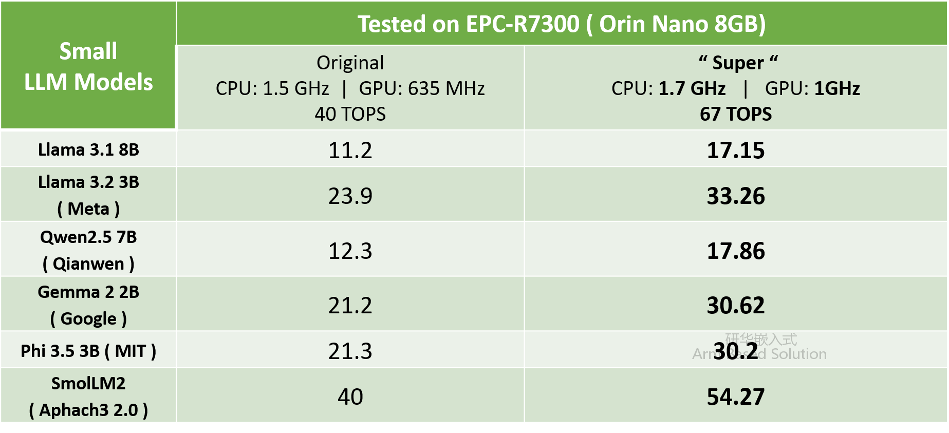 除了DeepSeek和Gemma之外,由NVIDIA® Jetson Orin™ Nano和Super平台支持的EPC-R7300还支持多种sLLM模型,允许开发人员根据项目需求灵活选择。
