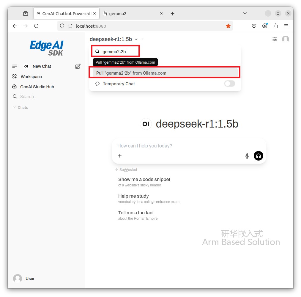 模型下载完成后,从下拉列表中选择下载的模型。这里的例子是 gemma2:2b。