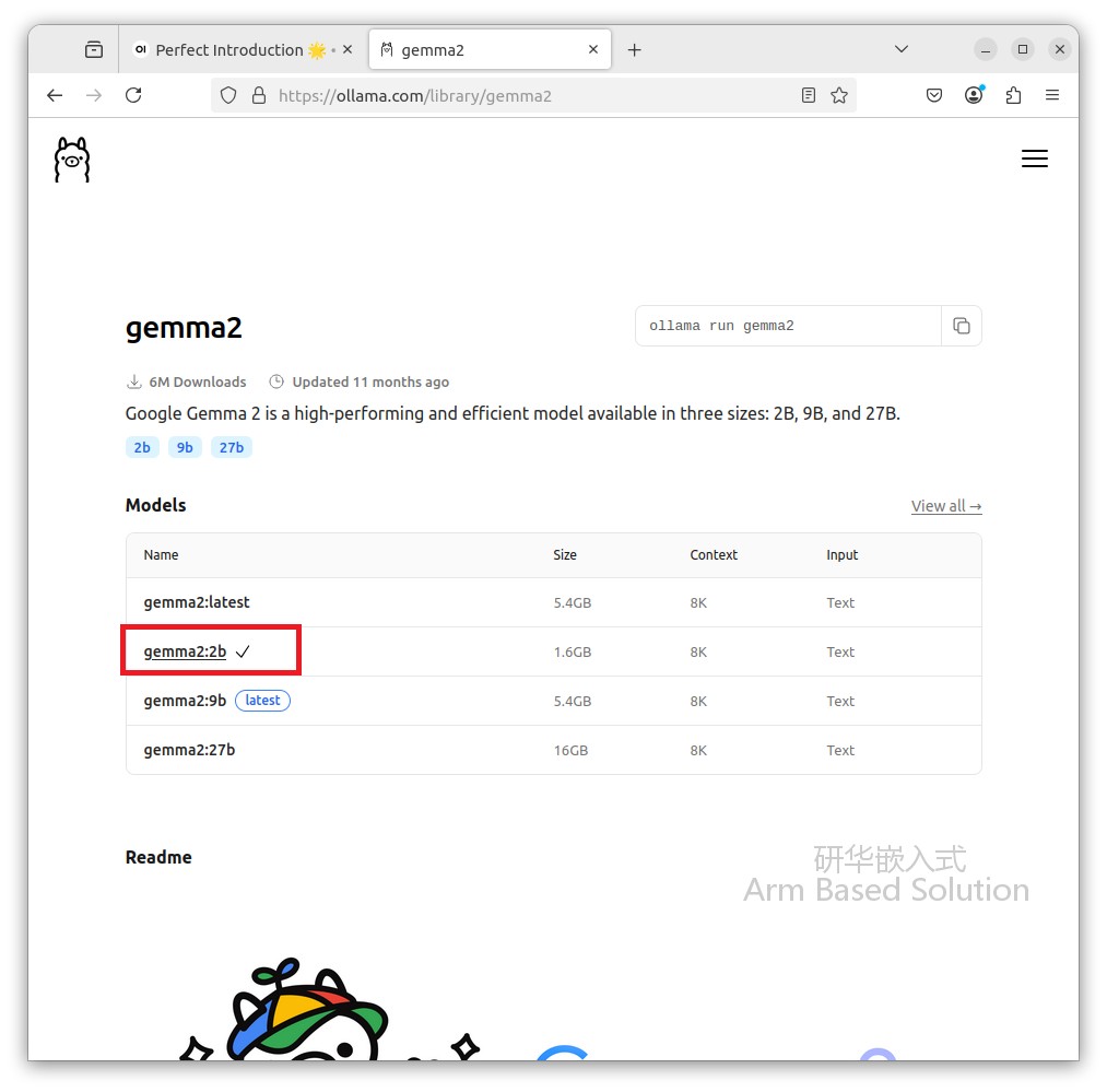 示例:使用gemma2模型,复制gemma2:2b模型名称。