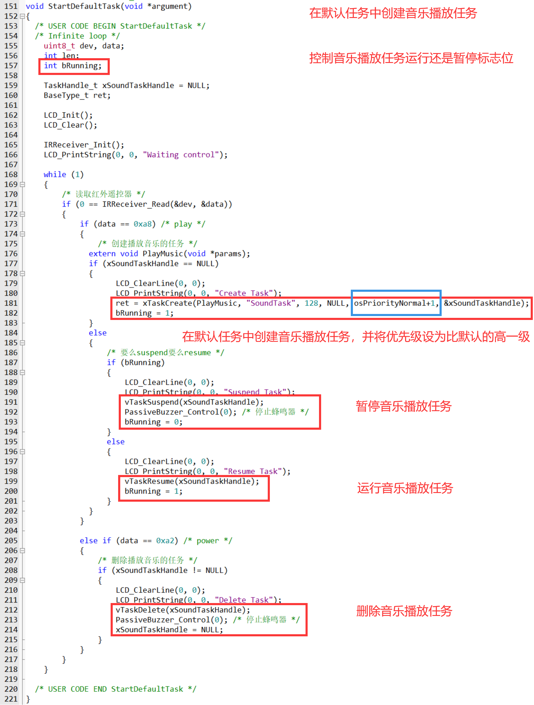 以蜂鸣器播放音乐为例:虽然任务被删除了但是功能函数可能还在执行,所以需要将功能函数也关闭