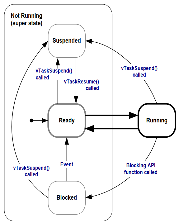 正在运行的任务可以让自己或其他任务处于暂停状态(通过调用函数传入任务句柄的方法)