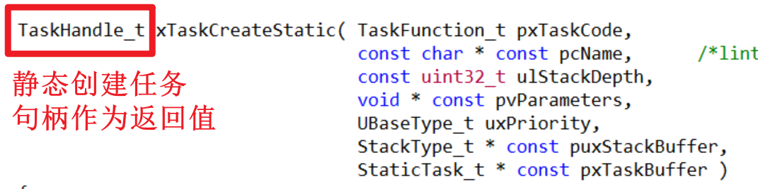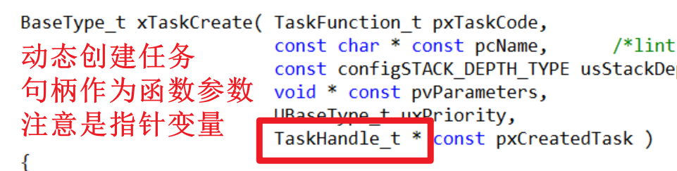 不论是静态还是动态创建任务都会有函数句柄这一参数