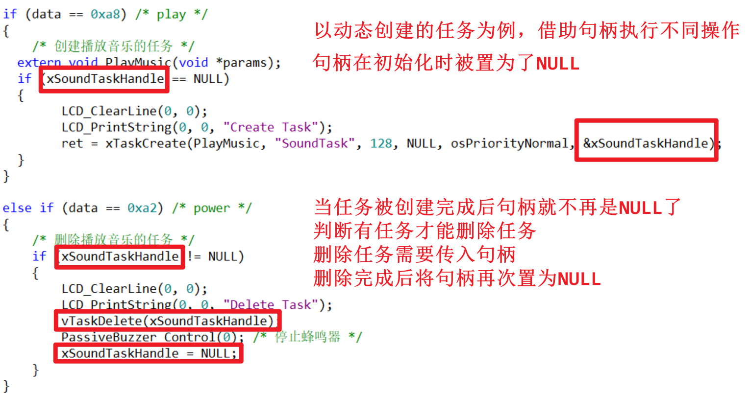 静态任务的返回值就是句柄,动态任务创建会用到句柄作为参数